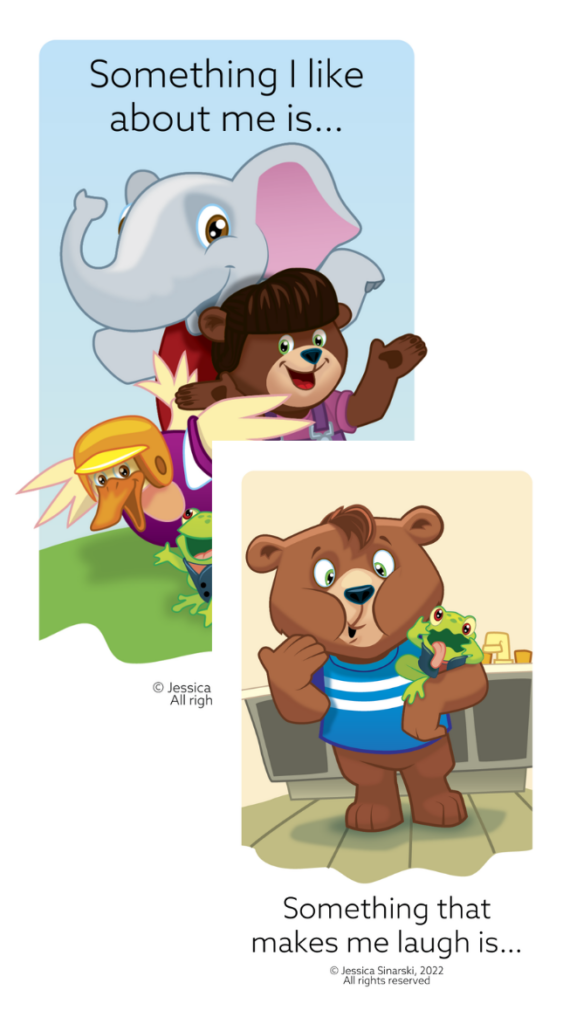 Riley the Brave and his animal friends create a familiar, reassuring presence that helps children feel understood and supported. The sentence starters gently lower the barrier to expression, making it easier to talk about topics like anger, worry, grief, family changes, school challenges, and other everyday stressors without forcing disclosure.